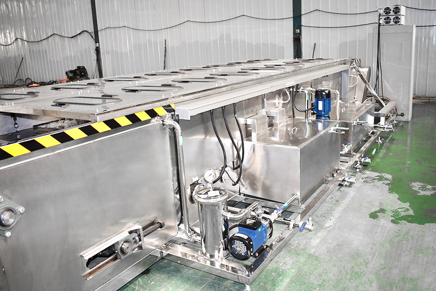 該設(shè)備有上下料網(wǎng)帶、超聲波清洗工位、噴淋漂洗工位、高壓風(fēng)切、熱風(fēng)烘干工位、溫控水加熱系統(tǒng)、風(fēng)機(jī)、溫控空氣加熱系統(tǒng)、移動式風(fēng)刀、PLC+觸摸屏控制系統(tǒng)、管路系統(tǒng)及智能電器控制系統(tǒng)等組成。自動進(jìn)排液和自動加溫系統(tǒng)完全實(shí)現(xiàn)了無人干預(yù),自動運(yùn)行,很大程度上降低了工人的勞動強(qiáng)度。先進(jìn)的霧氣處理系統(tǒng)可以將清洗時(shí)產(chǎn)生的霧氣冷凝回流,空氣經(jīng)過濾和活性炭吸附后排出。