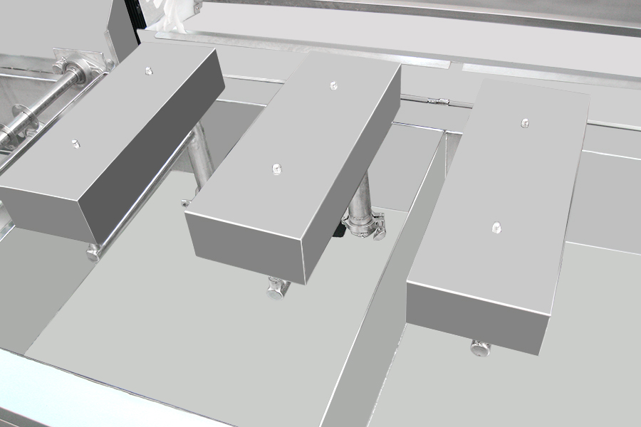 該設備有上下料網帶、超聲波清洗工位、噴淋漂洗工位、高壓風切、熱風烘干工位、溫控水加熱系統、風機、溫控空氣加熱系統、移動式風刀、PLC+觸摸屏控制系統、管路系統及智能電器控制系統等組成。自動進排液和自動加溫系統完全實現了無人干預,自動運行,很大程度上降低了工人的勞動強度。先進的霧氣處理系統可以將清洗時產生的霧氣冷凝回流,空氣經過濾和活性炭吸附后排出。