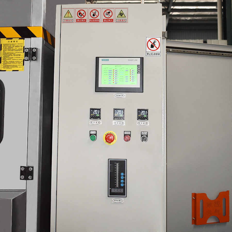 該設備有自動上下料及轉角系統、超聲波清洗系統,自動拋動、自動溢流和油污分離裝置,噴淋系統、自動高壓切水系統、自動烘干系統。機械手自動輸送系統采用高精度直線導軌配合高精度位置檢測傳感器,機械手可以準確的實現工件的抓取和放置。自動進排液和自動加溫系統完全實現了無人干預,自動運行,很大程度上降低了工人的勞動強度。先進的霧氣處理系統可以將清洗時產生的霧氣冷凝回流,空氣經過濾和活性炭吸附后排出。